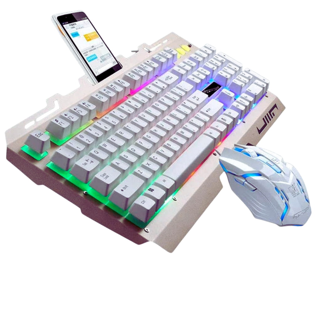 Upgrade your PC setup with the Dexora G700 Gaming Mechanical Keyboard. This full-size, mechanical-style keyboard comes with colorful LED backlit keys, a responsive gaming mouse, and a built-in phone holder, making it perfect for gaming, office work, online classes, and daily PC use.