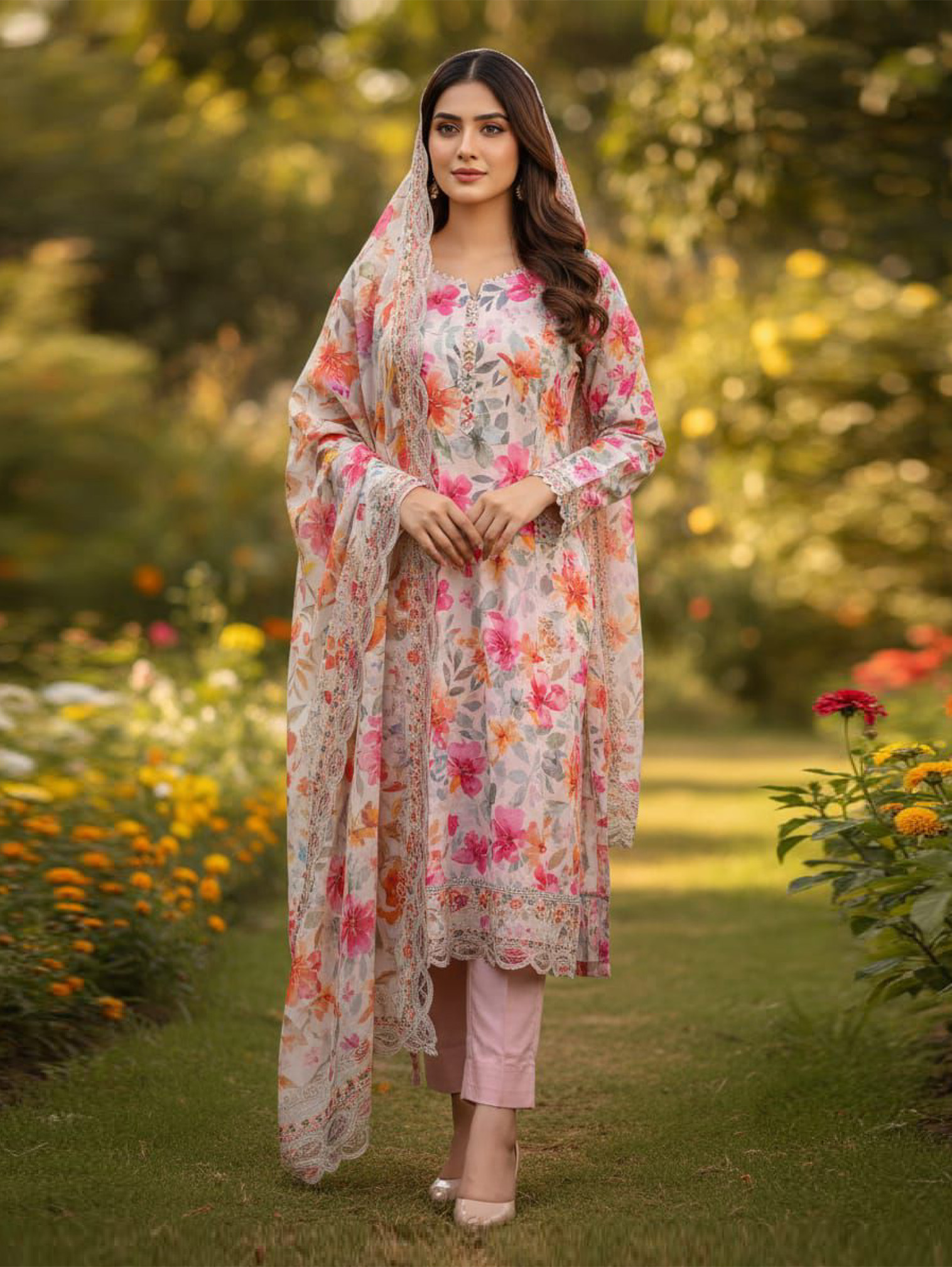 Design Work : Embroidery With Zam Zam Laser Cut Three Piece